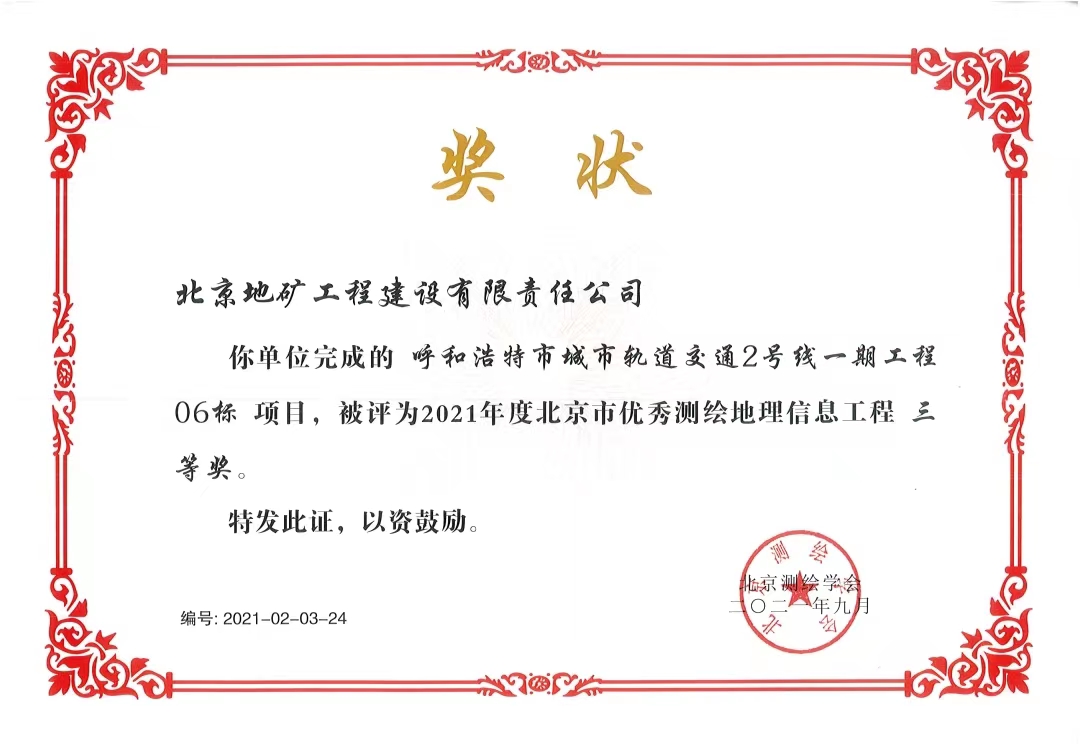 • 2021年呼和浩特軌道交通測繪獎狀