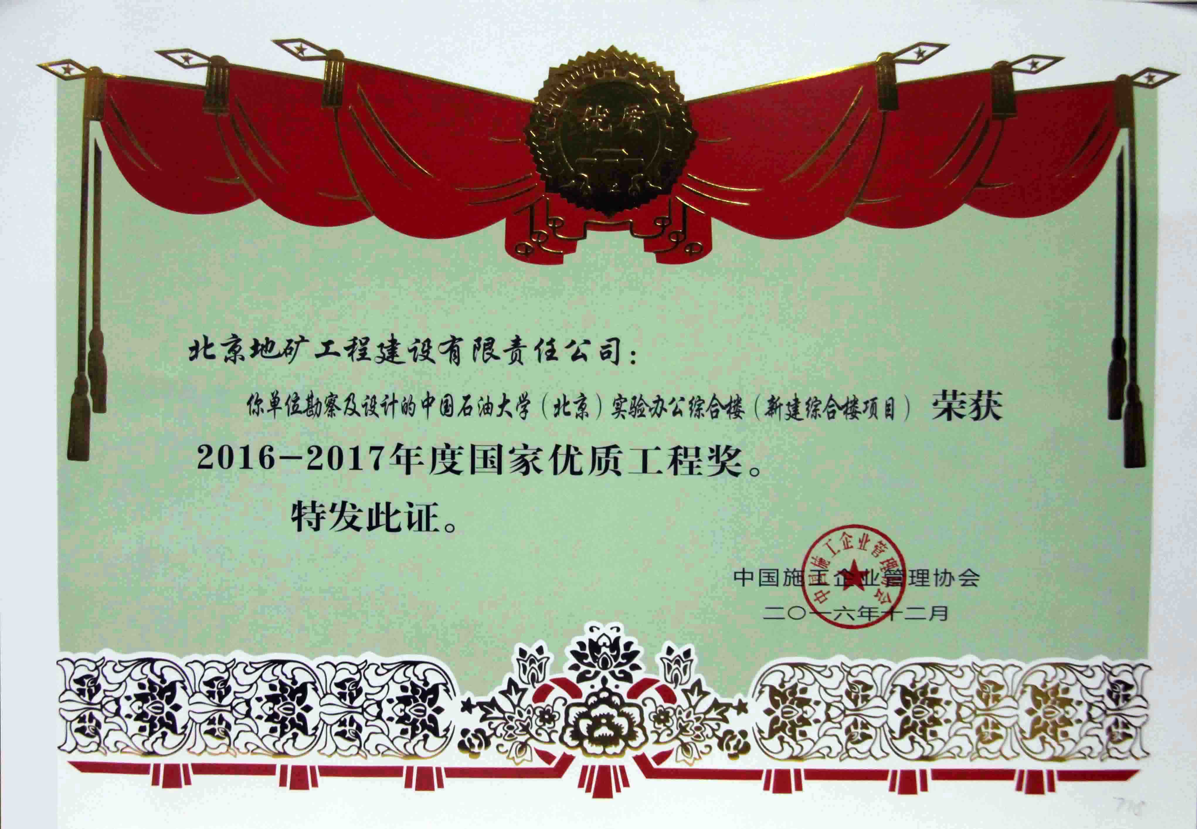 • 2016-2017年國家優(yōu)質工程獎