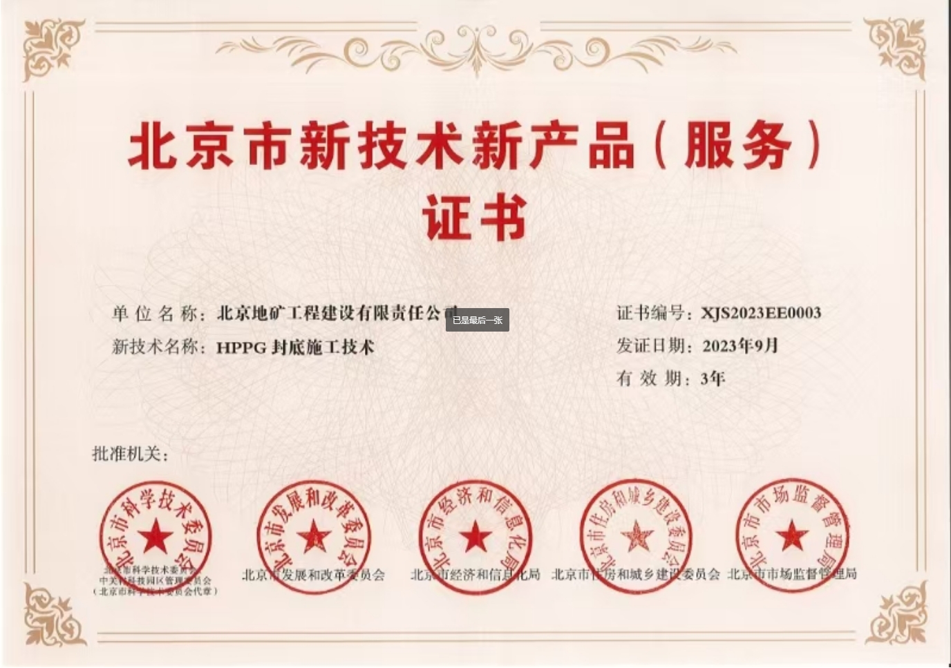 北京市新技術新產品(服務)證書